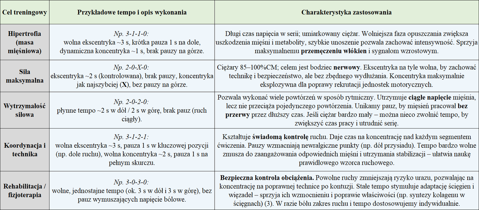 Podsumowanie metod: Modyfikując czas trwania poszczególnych faz ruchu, możemy uzyskać różne efekty treningowe nawet w tym samym ćwiczeniu.
